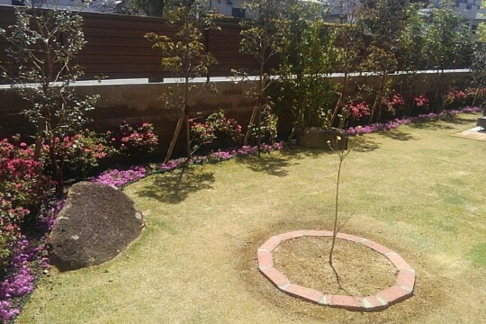 奥様のご希望で、ツリーサークルを造りハナミズキを新植させて頂きました。